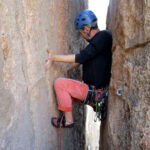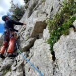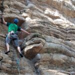 Por ejemplo el segundo largo de la Colmillo de Marfil del Elefante del Collado Cabrón. Si empalmas ese segundo largo con el primero (que está totalmente equipado con chapas), hay dos pasos de plomo, una chapa y luego otro plomo. No es que sea un A2 continuo, son un par de pasos aislados, pero superarse de esos dos plomos acojona un poquito, lo justo…, porque si algún plomo saltara tendrías una caida limpia y una ristra de parabolts que te frenarían sin duda.